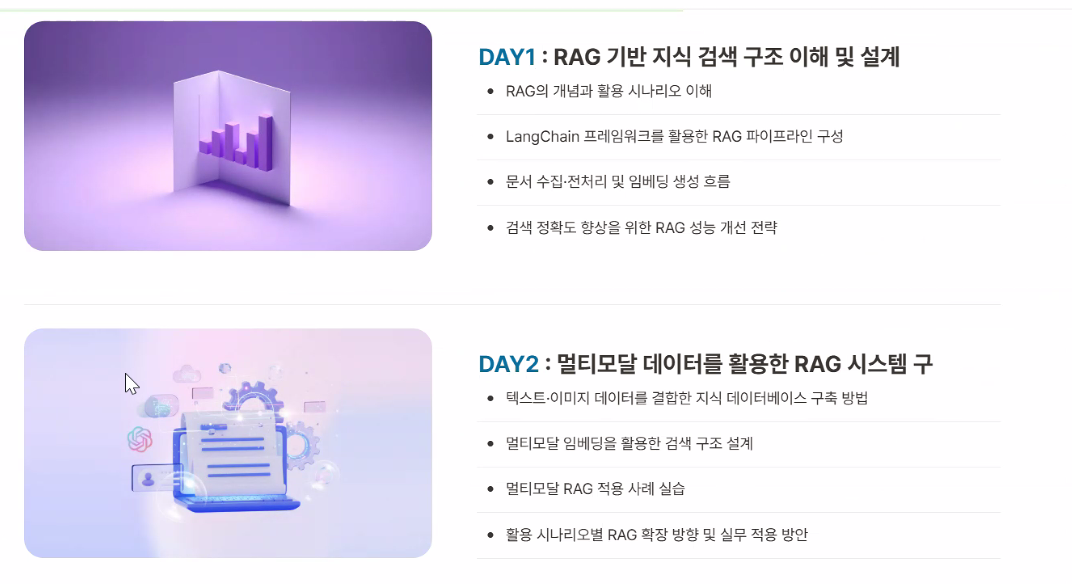 바로 관심 있었던 RAG Agent 외부 교육을 신청했다. 팀장님에게 허락을 받고 스무스하게 신청 완료가 되었다.