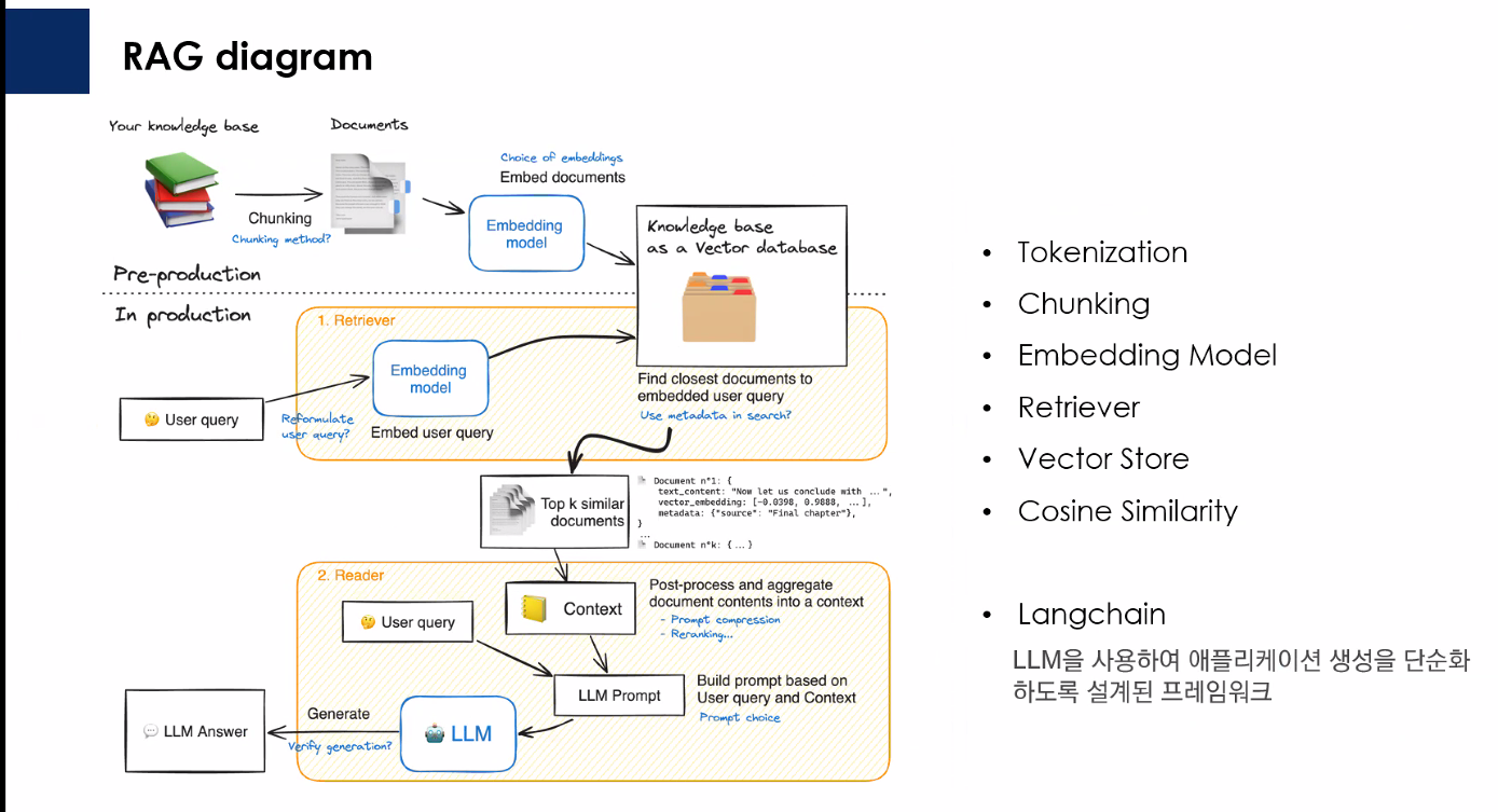 강사님이 처음에 RAG의 흐름이라고 보여주신 그림이다. 전반적인 강의에서 이 그림이 사용되었다.